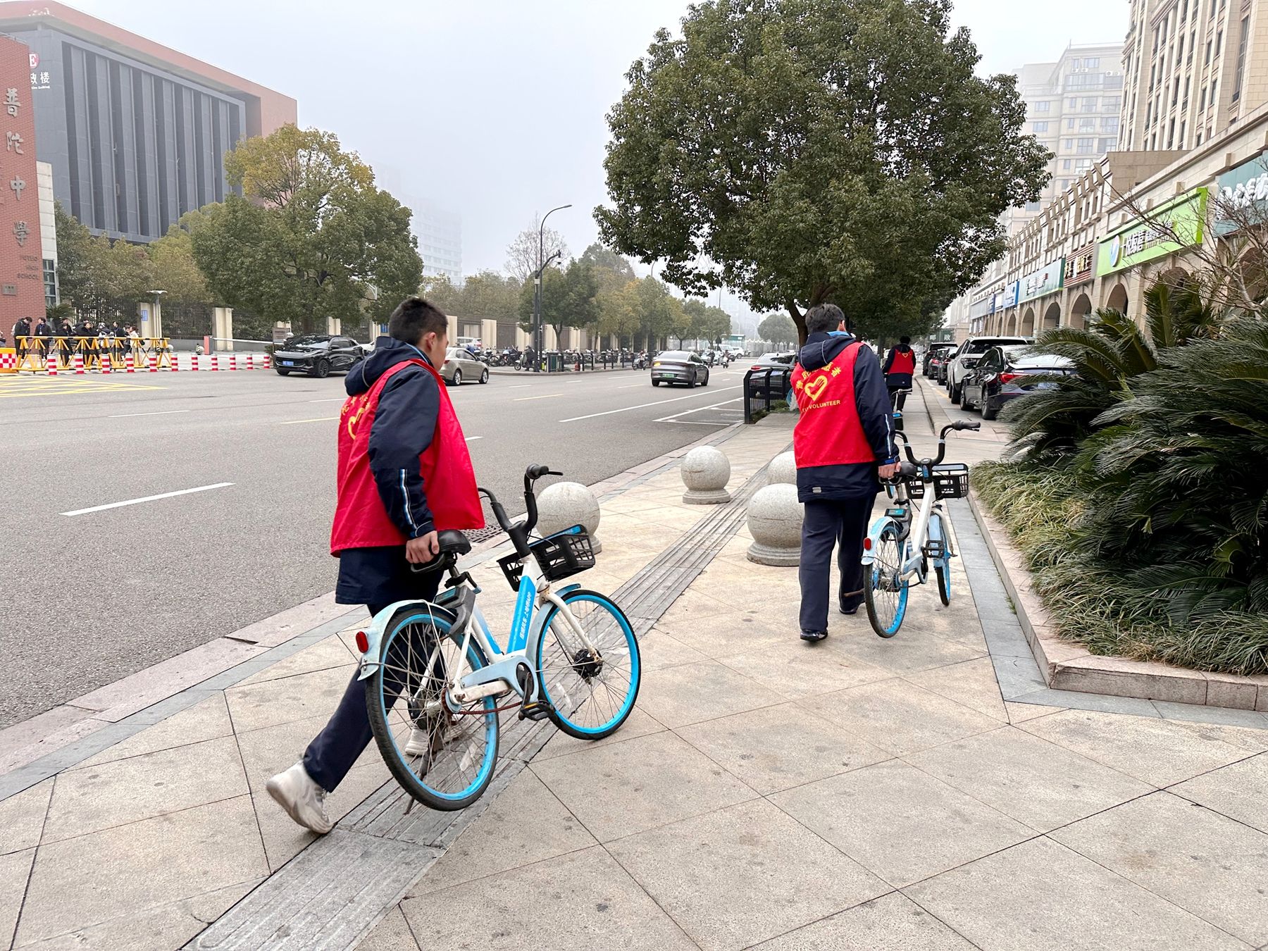 活動當(dāng)天,志愿者們沿途彎腰撿拾學(xué)校周邊草叢和沿途地面上的紙巾、果皮、食品袋等各種生活垃圾,還街道美麗風(fēng)景。之后,他們還來到公交站臺,認(rèn)真清理站臺及周邊的垃圾、擦拭站牌和座椅,同學(xué)們分工合作,齊心協(xié)力,將站臺打掃得煥然一新??吹綄W(xué)校附近的共享單車和共享電瓶車擺放混亂,志愿者們一一整理,整齊有序擺放好,受到過往居民的肯定和表揚(yáng)。